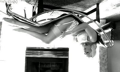 Adorable old-school blonde white honey on the lounger poses on cam