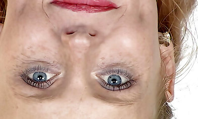 Old German chick with huge natural bumpers frolicking with her sex toy