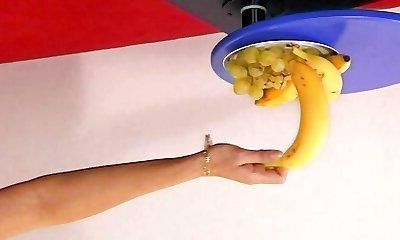 Katja conforms her body to a huge dildo
