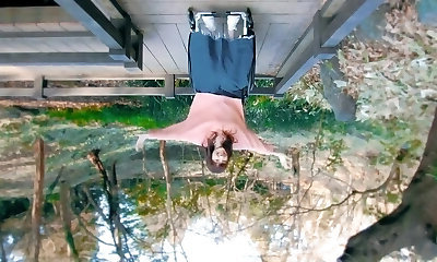 junge dark haired besorgt es sich mit ihrem dildo am badesee