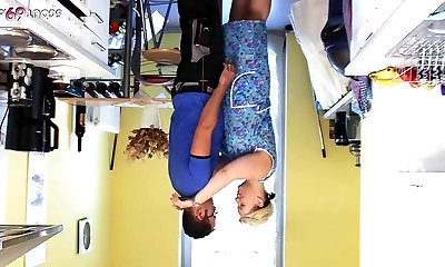 German old Granny Erika 73 seduce to Fuck in kitchen by Young Guy
