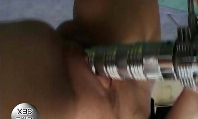 Curvy German lady pleasing her pussy with a spinning pin