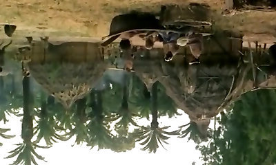 junge dark haired besorgt es sich mit ihrem dildo am badesee