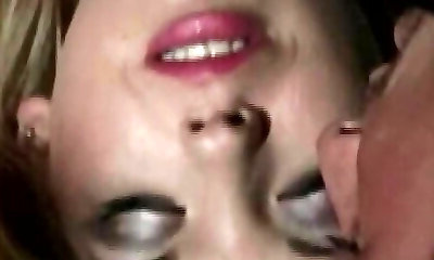 An outstanding German blonde gets her face coated with cum