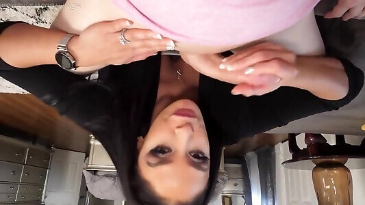 Bootylicious dark-hued haired girlie blows messy trunk in 69 pose