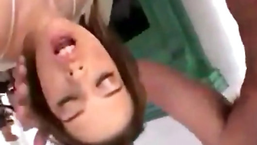 Asian wifey swallows geyser and lovely peeks down half-shirt